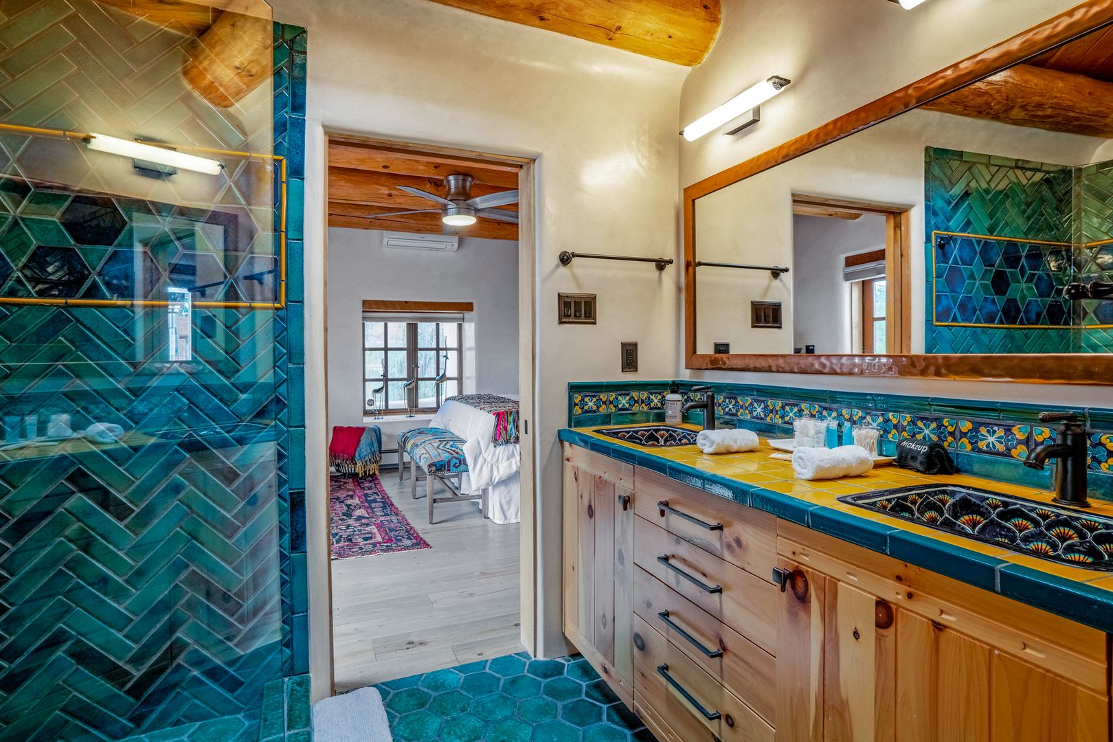 This is a gorgeous 2 bedroom, 2 1/2 bath home with 2 levels only 2 blocks north of the Historic Santa Fe Plaza.